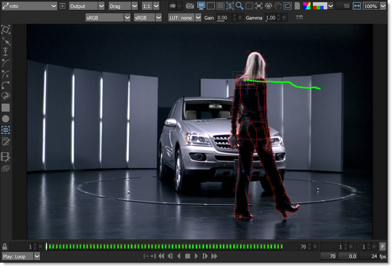 Silhouette’s Roto allows you to quickly create sophisticated animated mattes using B-Spline, Bézier or X-Spline shapes. Intelligent design and easy-to-use tools, such as variable edge softness on a point by point basis and realistic motion blur, assist you in creating complicated shape animations. Integrated motion tracking makes the normally tedious task of rotoscoping a breeze.