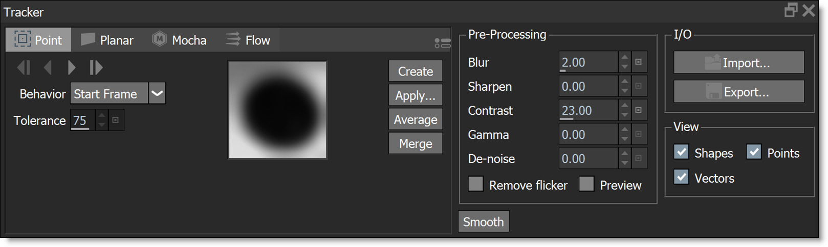 • Post-processing of point tracking data to include: Average, Smooth and Merge