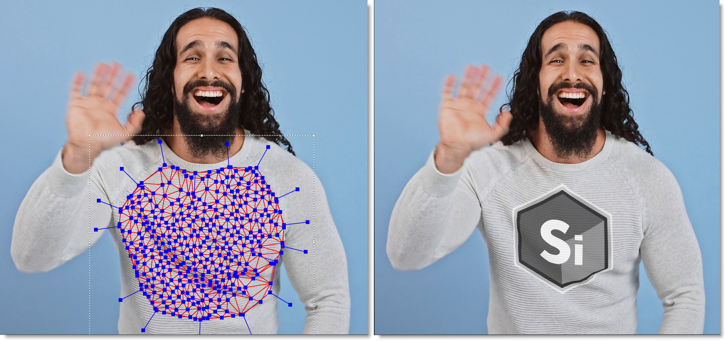 PowerMesh enables a powerful sub-planar tracking process that tracks warped surfaces and organic objects. Mesh tracking takes place in Mocha Pro and when connected to the PowerMesh Warp > Data input in Silhouette, images are either warped or unwarped based on the generated mesh.