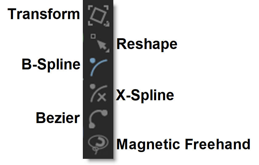 Since open shapes are required for Lens Correction, it has its own shape tools similar to those in the Roto node. You can choose from B-Spline, Bézier, X-Spline or Magnetic Freehand shapes and have use of the Transform and Reshape tools as well.