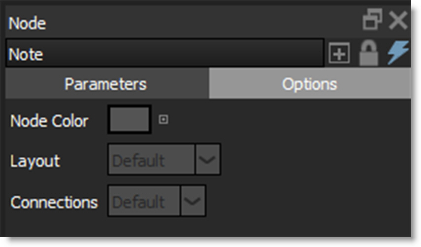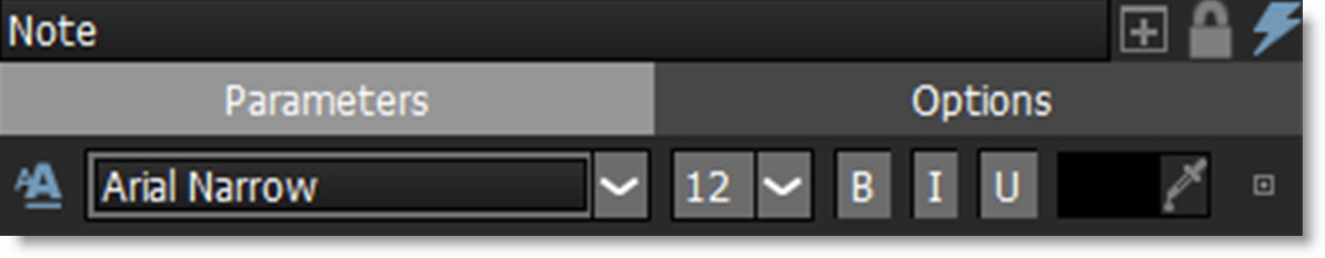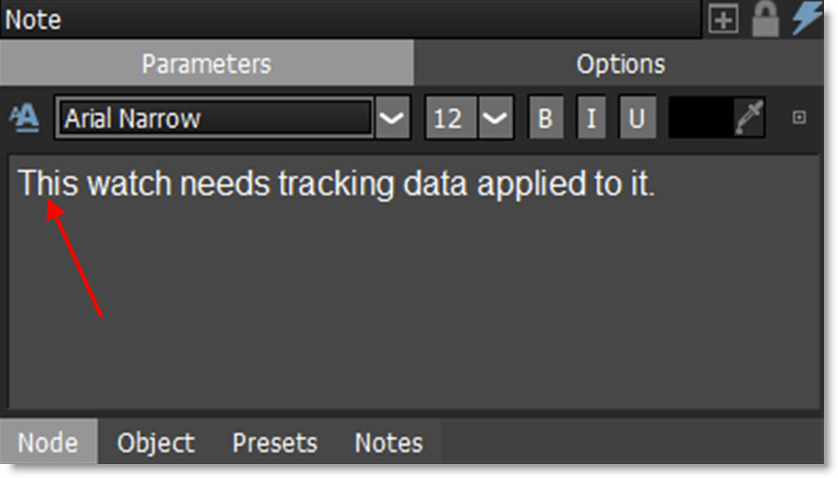 When the Note node is added to the Trees window, the cursor appears in the Note > Parameters text editor where you can type your note.