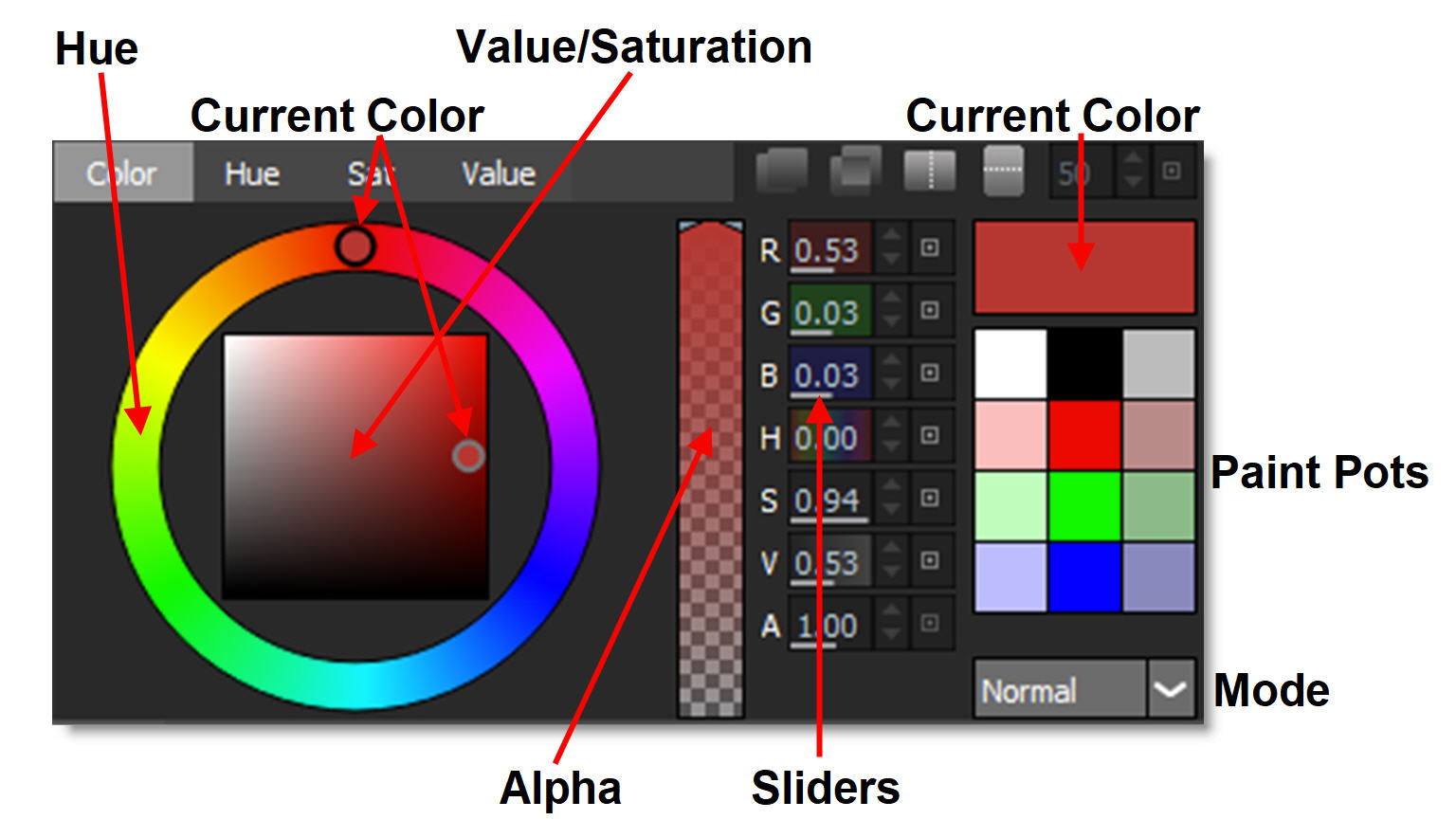 Right-click | Picks a color off of the screen from a single pixel |
