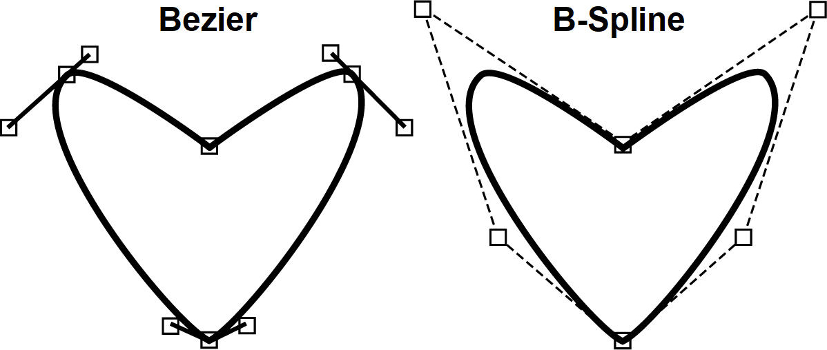 The images below show how the same shape can be created with either Béziers or B-Splines.