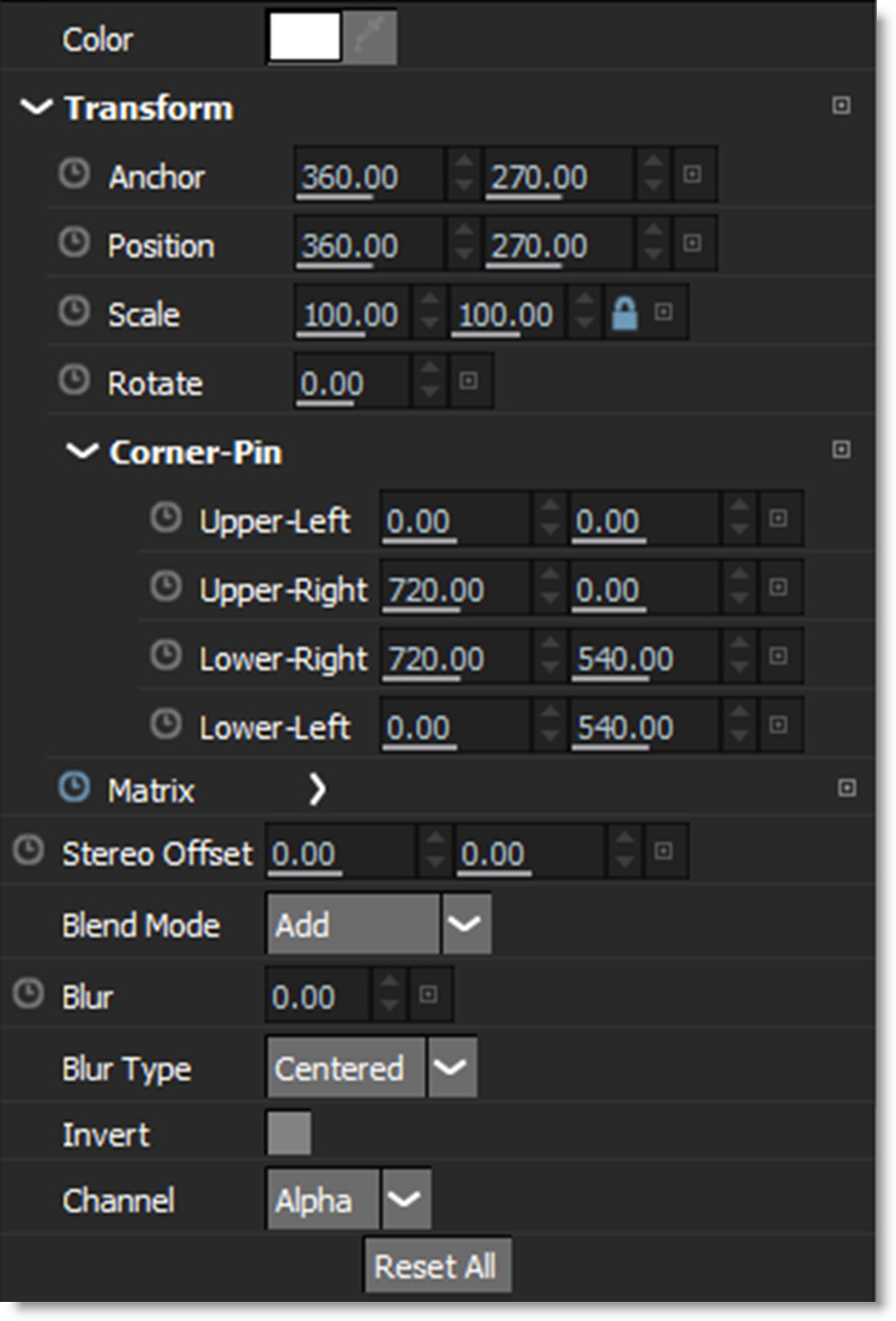 Outputs a composite of the foreground over a solid color based on the Roto > Composite Color preference. The default color is gray.