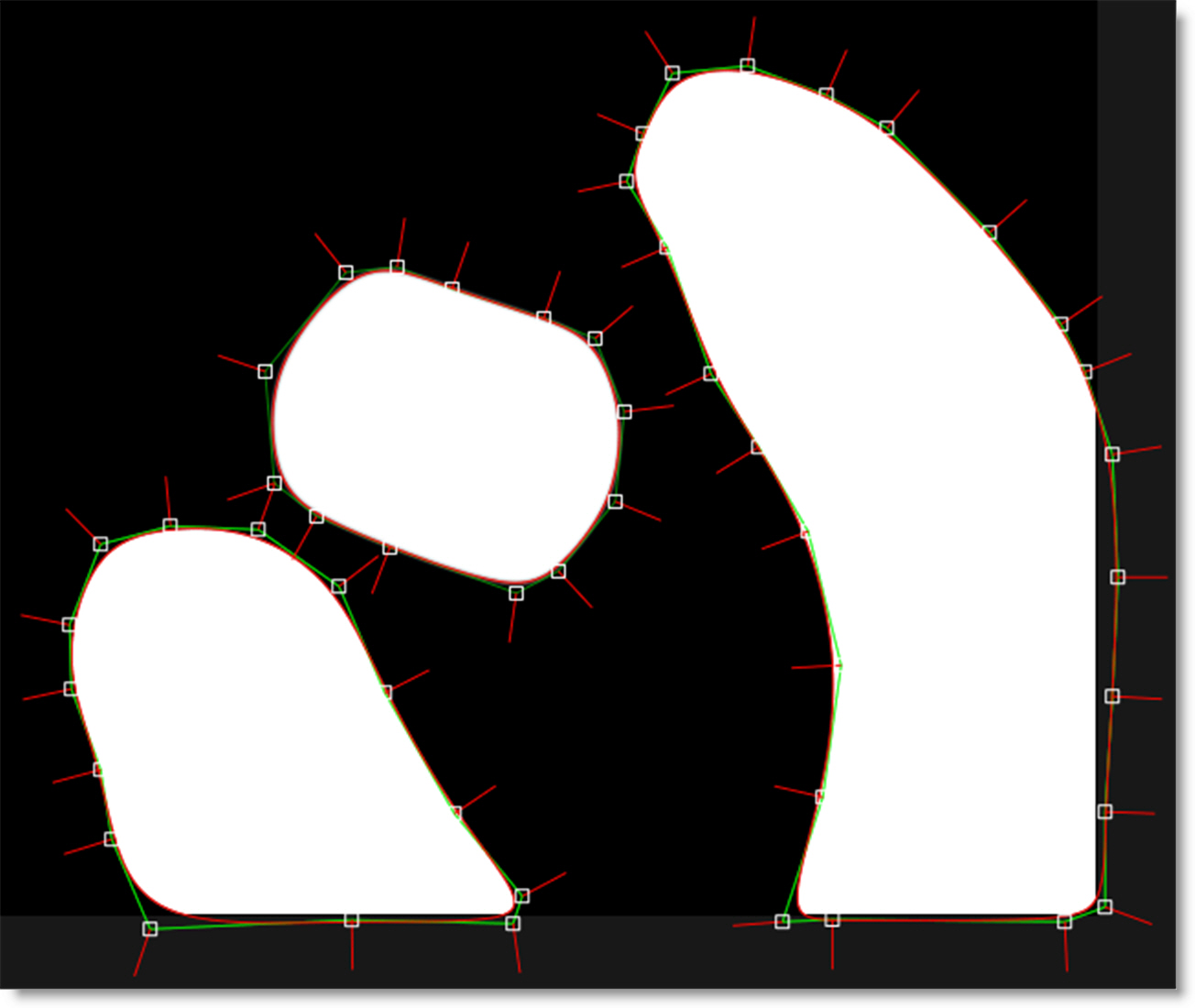 To draw a Bézier spline, click on the image to place the first control point and drag the cursor while keeping the mouse pressed to extend the control point’s tangents. Click on the screen to add more control points and when finished adding points, click the first control point that you added to close the shape.