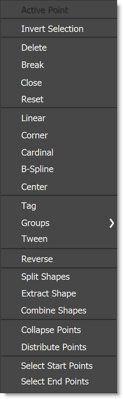 Ctrl/Cmd-Alt-1 | Sets the point tension to Corner |