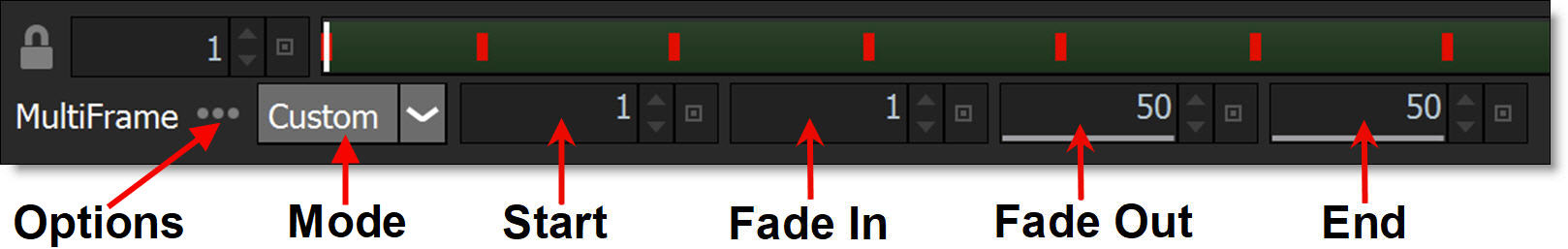 Resets the Start, Fade In, Fade Out and End fields to the work range.