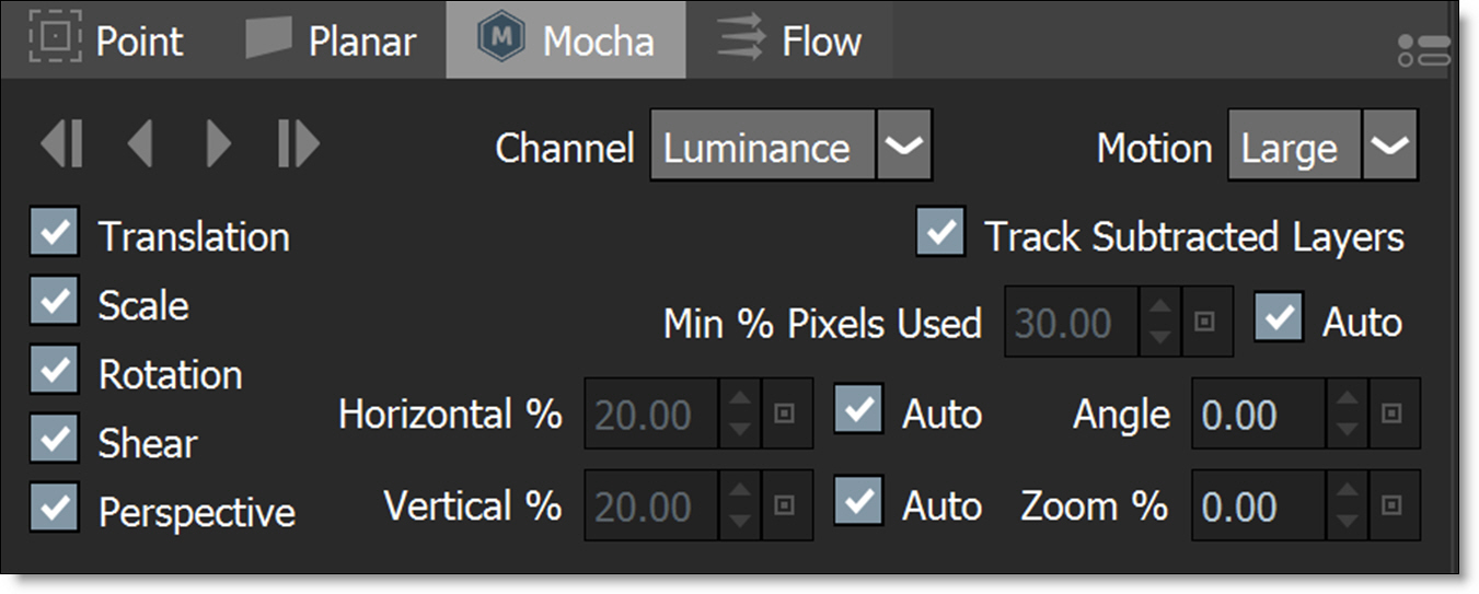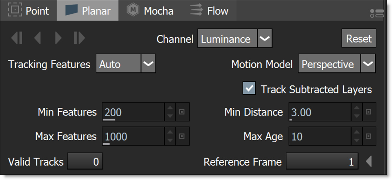 The tracker can track both forward and backward one frame at a time or for the entire duration. The controls are enabled once a tracker has been selected.