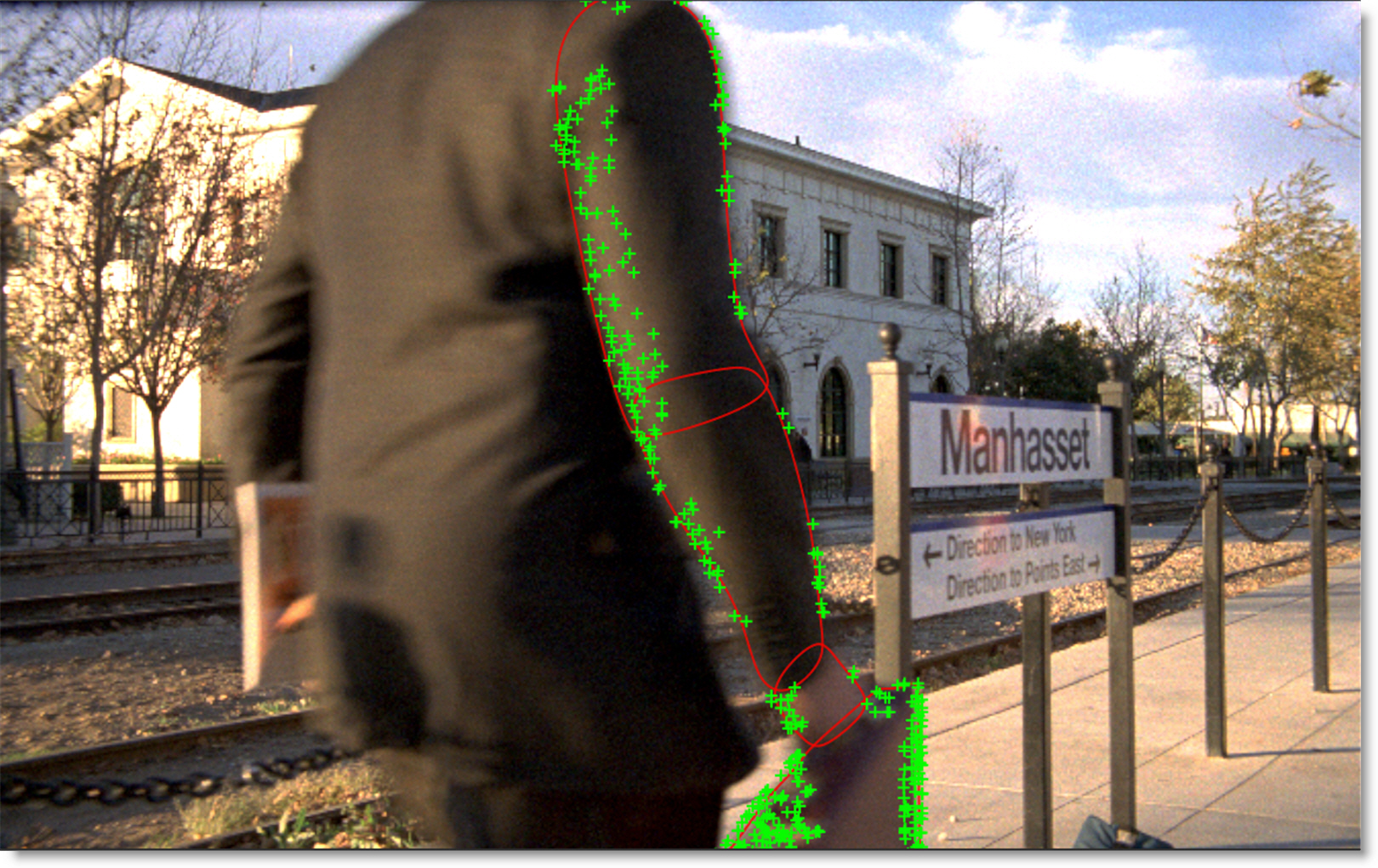 For difficult shots, it is helpful to pre-set keyframes for the tracker at various points in the clip. The Match Area will use these keyframes as a reference while tracking.