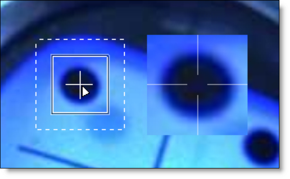 A magnified version of the Match Area is displayed to aid in the placement of a tracker. It is activated when you click the Create button or when you move an existing tracker. The magnified area is displayed in the color space selected from the Mode pop-up menu.