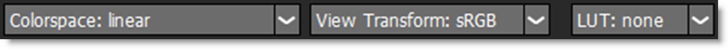 4 In the Color Management toolbar located below the Display Options icon, make sure that the Colorspace is Linear and the View Transform is sRGB.
