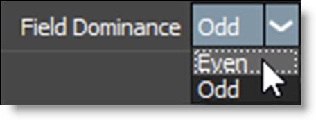 4 Choose Even (NTSC) or Odd (PAL) deinterlacing from the Field Dominance pop-up menu.