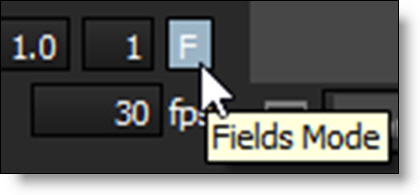 5 Press the F button in the Timebar located at the bottom right of the Viewer to expand the Timeline and increment in fields (half frames).