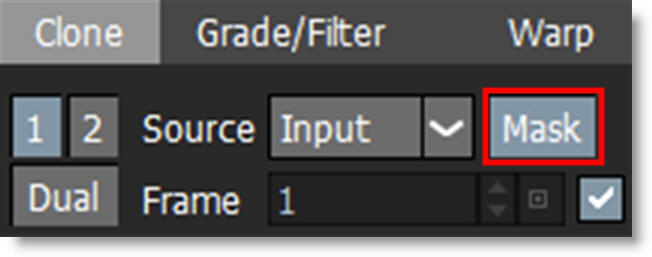 1 In the Clone controls, select Output, Foreground or Input 1-5 in the Source pop-up menu and then set the Frame parameter to choose which source frame to paint from.