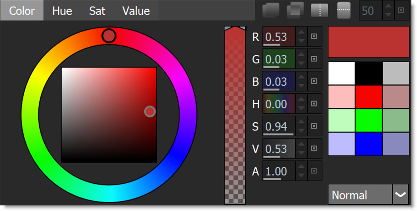 4 Select the Color brush (Shift-C). By default, it is preset to white.