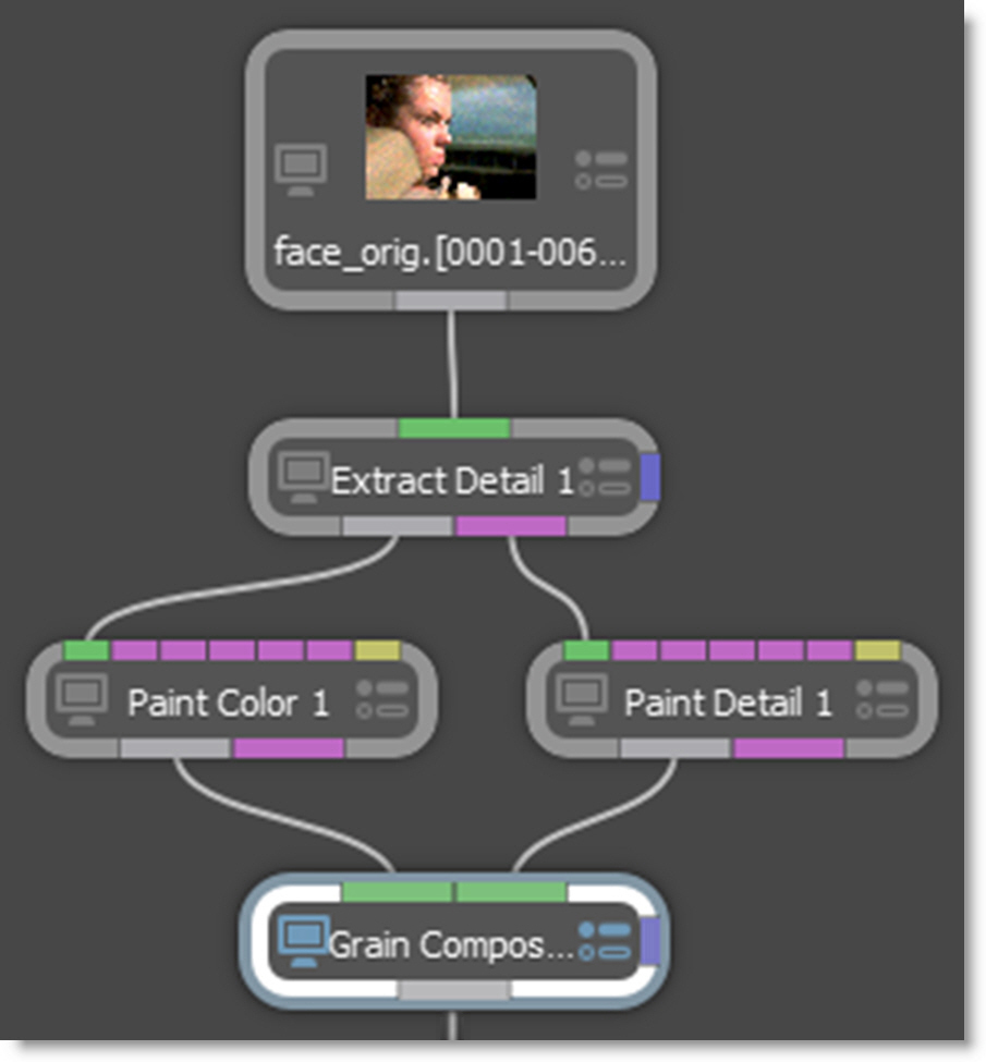 4 Connect the second output of Extract Detail (the detail layer) to a Paint node and rename the Paint node to Paint Detail.