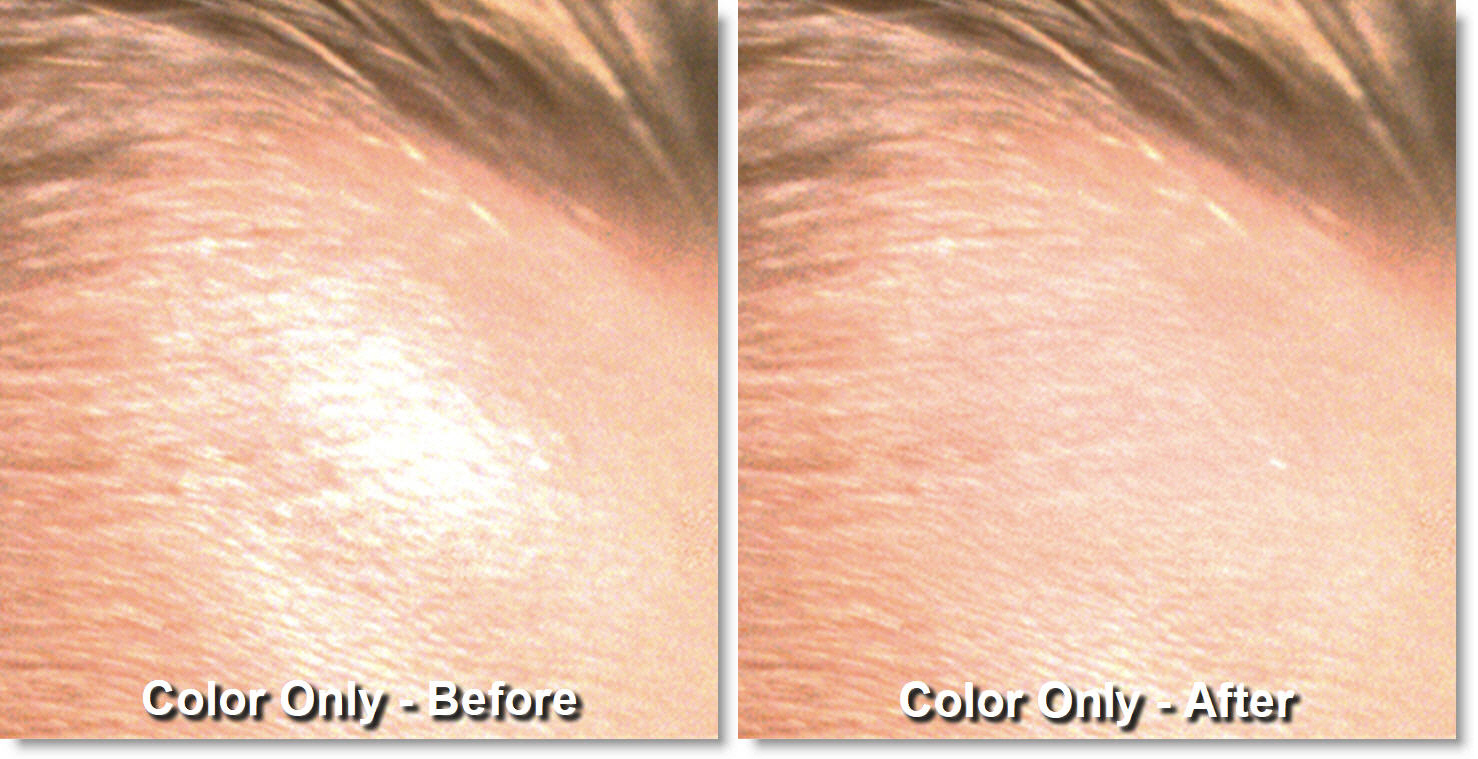 Selecting Color mode preserves detail and only affects the color layer. This is useful for evening out the color and tone of the image.