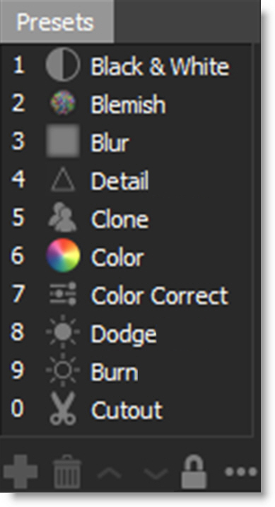 Note: A selected preset continually updates until deselected, a new brush is selected or the Lock icon is enabled. You can deselect a preset by Ctrl/Cmd-clicking on it.