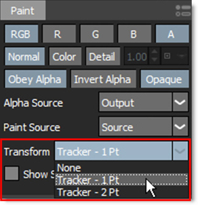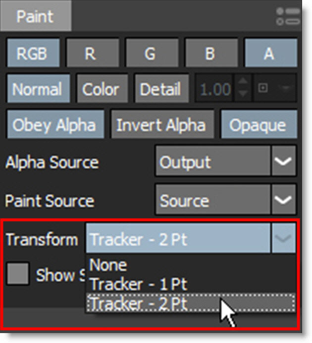 8 Select a tracked layer in the Paint tab’s Transform pop-up menu.