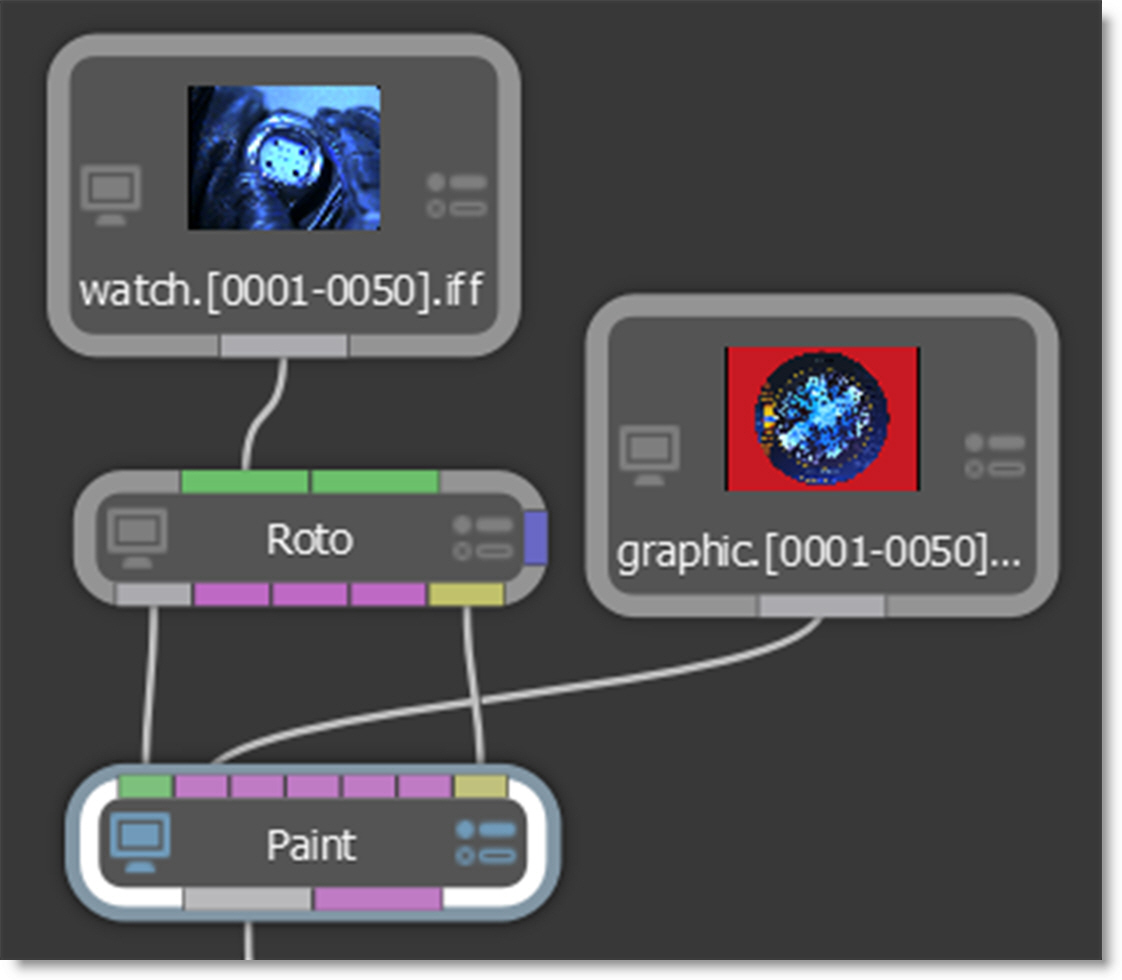 In the example above, I have also hooked up a clone source into the first clone input of the Paint node.