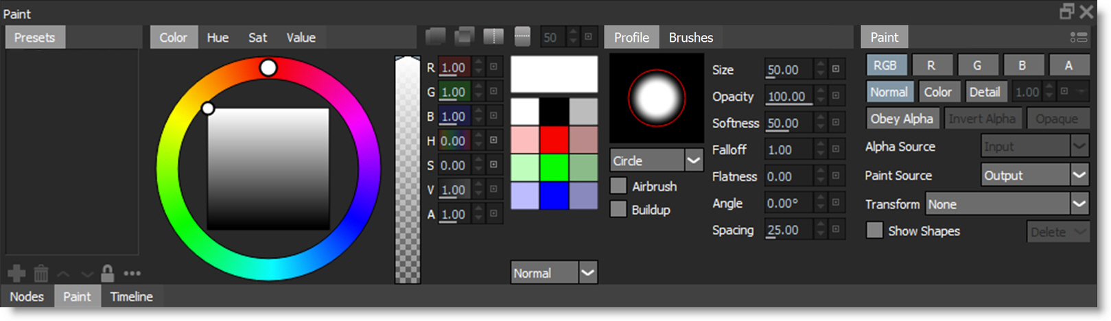 4 Using the Paint > Node > Paint Only Alpha parameter, select either a hard or soft edged alpha channel.