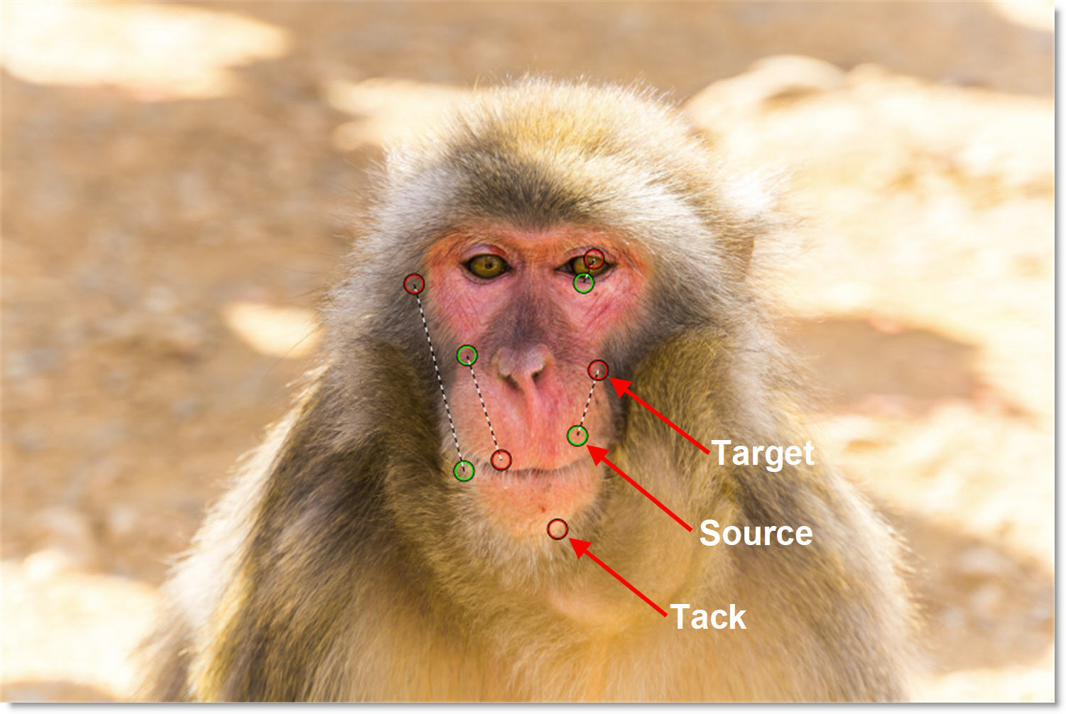 Drag handles on corners of image | Corner-pins the clone source |