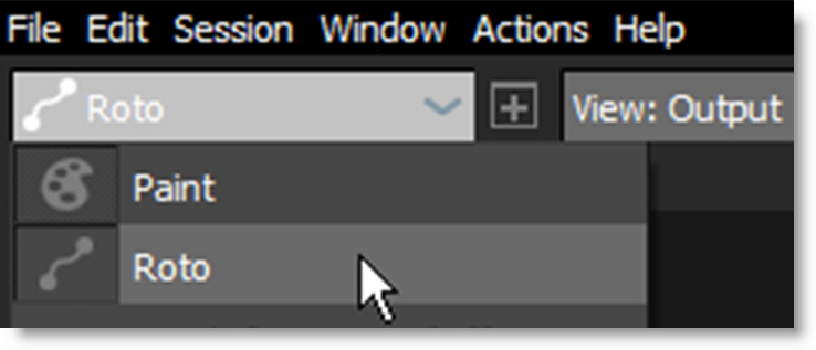 3 Make sure you are viewing and editing the Roto node by single-clicking on it in the Trees window or selecting it in the Node Selector at the top left of the Viewer.