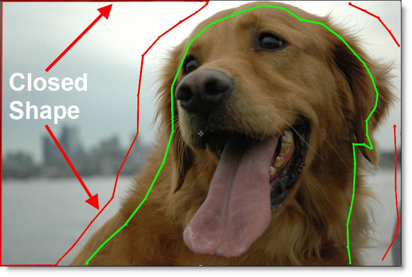 Note: The Closed Shape method does not handle a foreground object with background holes. Instead, use the Open Shape method when extracting an object with holes.