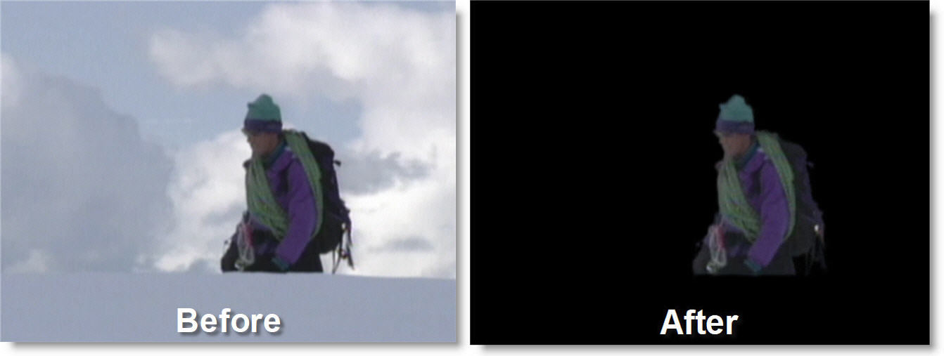 If you look closely at the edges of our hiker example, you will see some white fringing created by the sky from the original image. By activating Power Matte’s Color Estimation feature, the fringing can be removed by estimating the color of the foreground in unknown and semi-transparent areas.