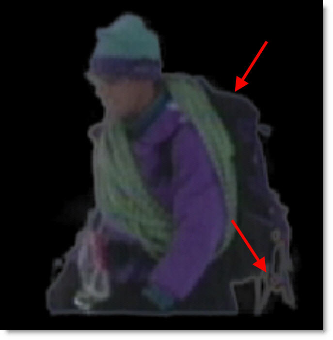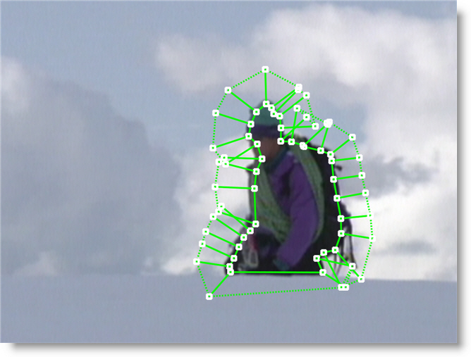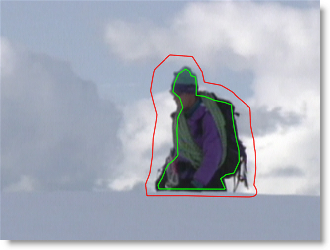 6 Now, draw closed shapes to define background area (what you want to get rid of). If your foreground object is completely surrounded by background, like the hiker example below, a quick way to define the background area is to first draw a closed shape around the outside of the foreground and then invert it in the Object window. The areas outside of the background shape are then considered as background.