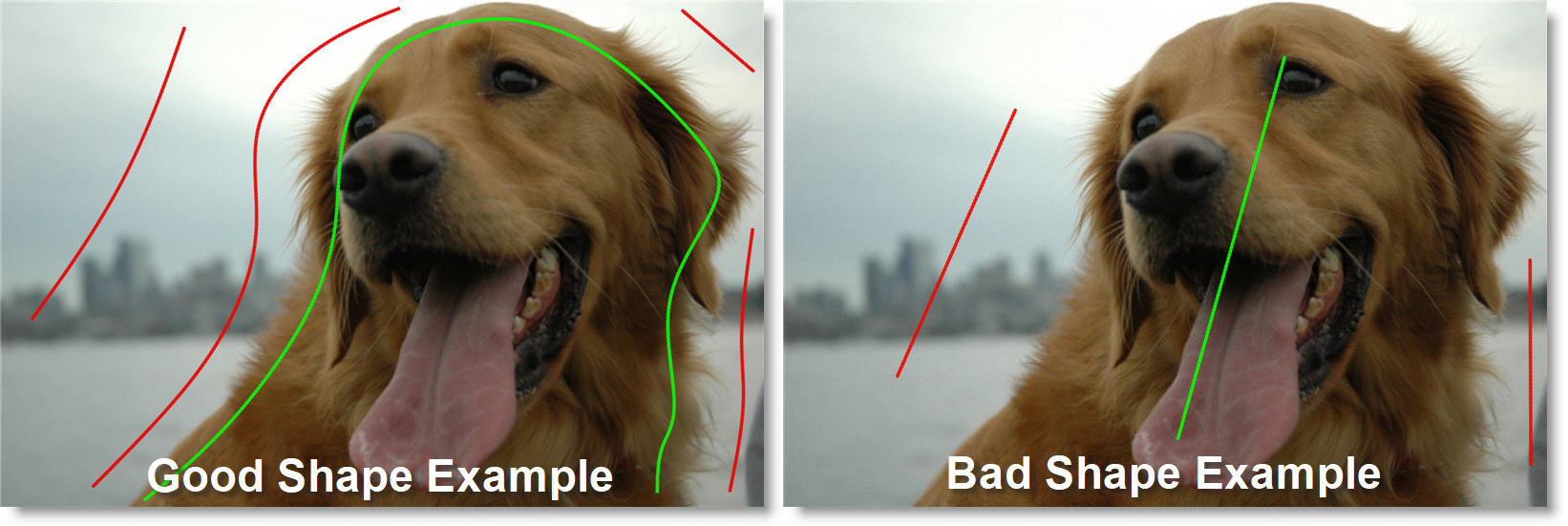 Let’s start by creating some open shapes. The shapes should be near the boundary of the foreground or background, but not right up against the edge. Also, if the foreground or background has varying colors, the shapes should cross over these colors.