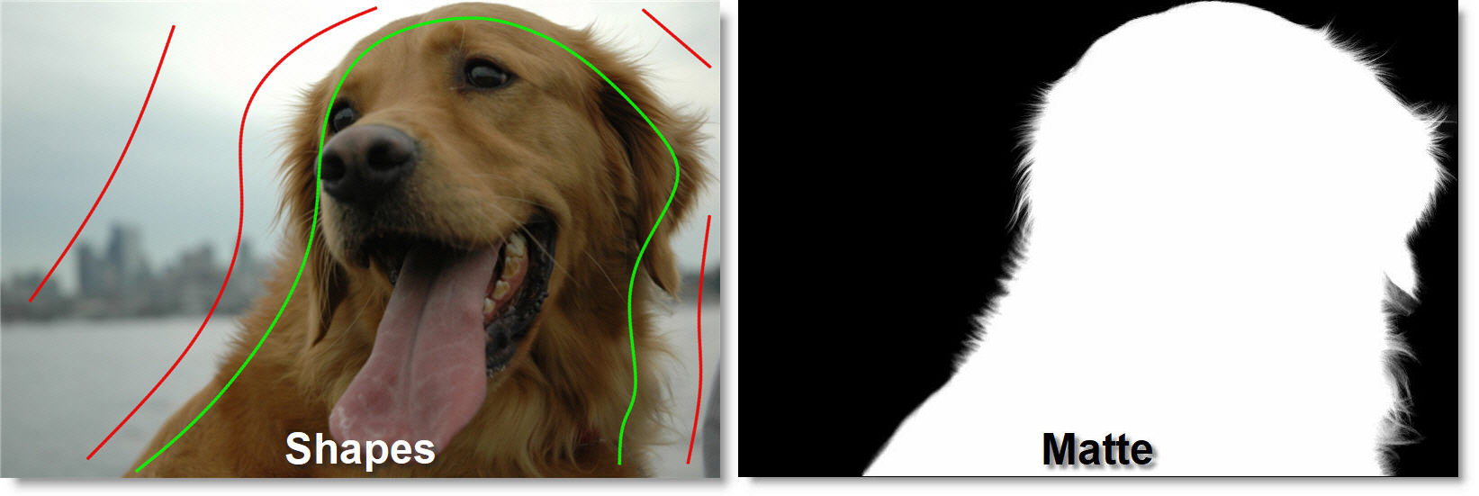 Power Matte creates mattes by using a trimap--a pre-segmented image consisting of three regions of foreground (what you want to cut out), background (what you want to get rid of) and unknown. Partial opacity values are then computed only for pixels inside the unknown region. Three trimap methods can be used: Open Shape, Closed Single Shape and Closed Multiple Shapes. This tutorial will use the Open Shape Method.