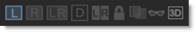 The stereo view modes, which only show up when using stereo sources, determine whether you are working on the Left View, Right View or both the Left and Right Views at the same time.