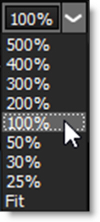 Choose from one of the preset zoom percentages. 100% displays the image at its actual size at a ratio of one image pixel to one screen pixel.