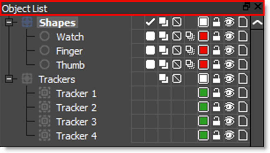 • Windows can be docked next to each other. For instance, you can put the Object List to the left of the Trees window with both being docked to the right of the Viewer.