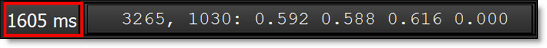 To the left of the Color Sample field, the last frame’s render time is displayed in milliseconds.